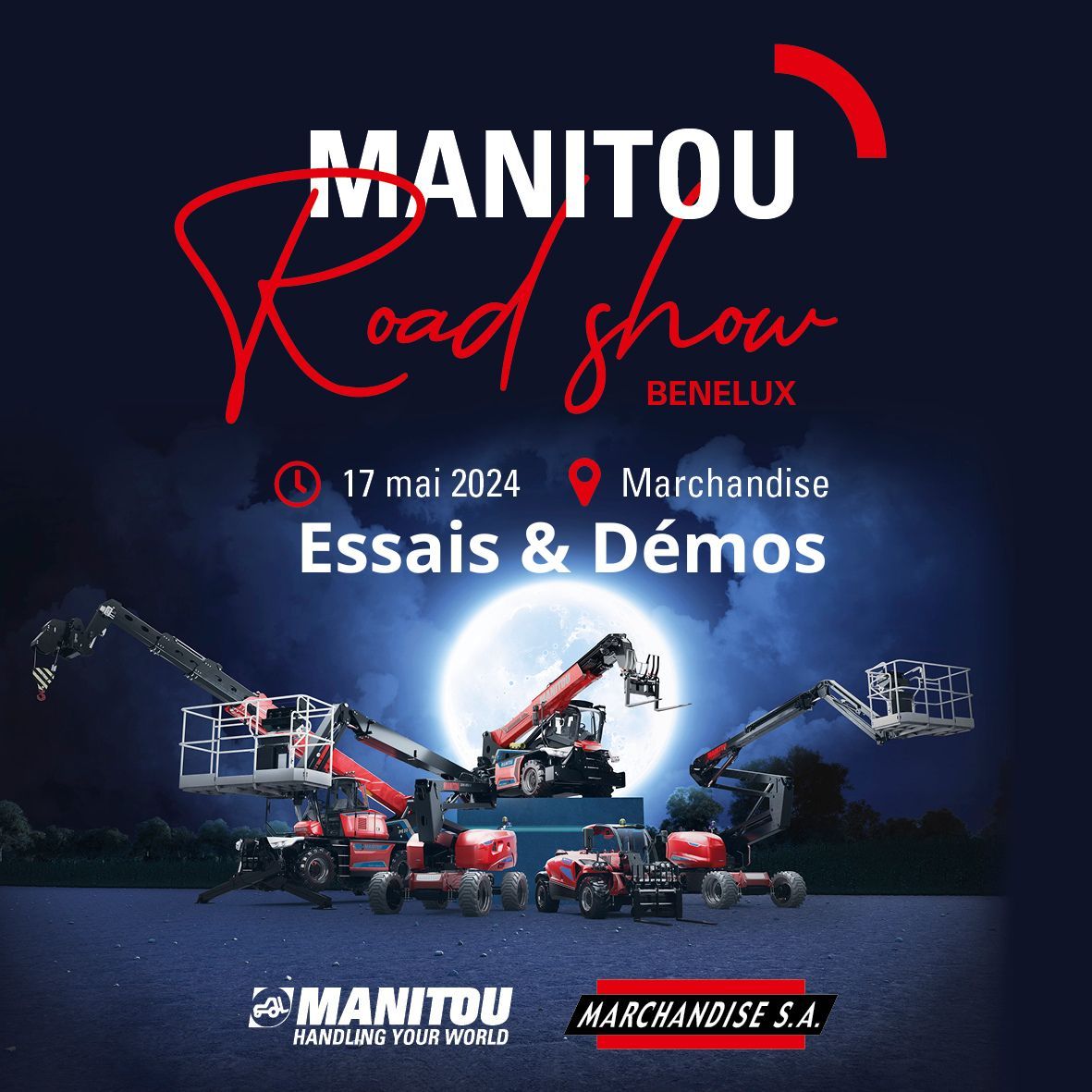 Le Road Show Manitou fera étape chez Marchandise S.A. ce 17 mai 2024, entre 13h et 19h. Venez découvrir et tester les nouveautés de la gamme Manitou !