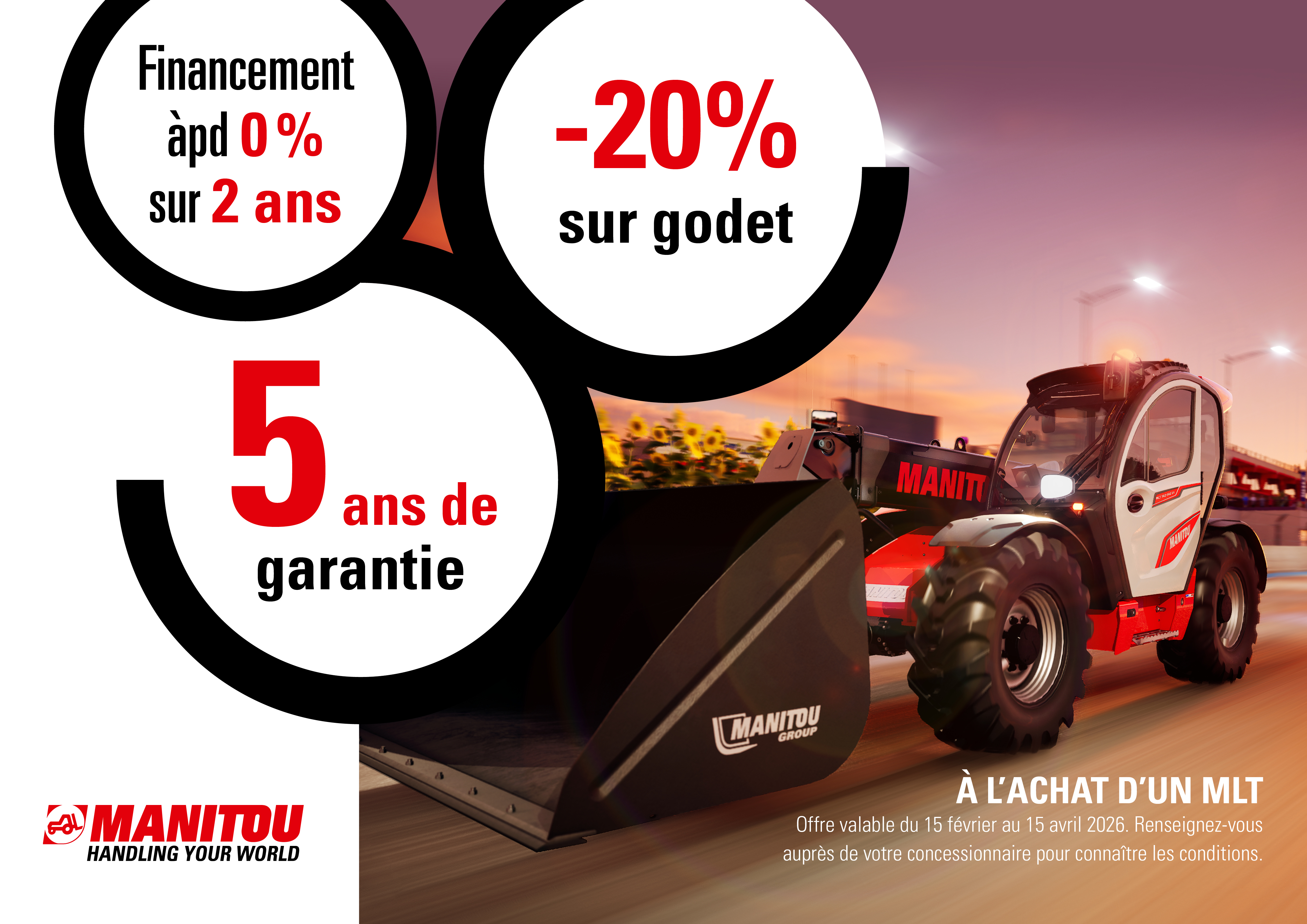 5 ans de garantie, financement à partir de 0% sur 2 ans et - 20% sur votre godet !